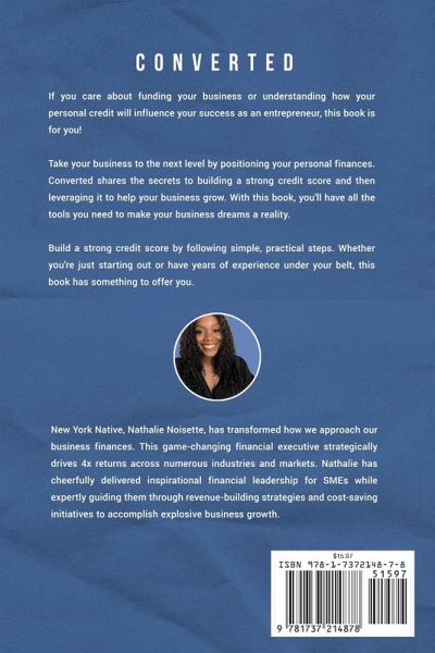 Introducing: "Converted" - Access The Power of Personal Credit to Skyrocket Your Business Growth! Are you a new entrepreneur looking to build a thriving business but held back by a less-than-perfect credit score? Do you dream of accessing the financial resources you need to make your entrepreneurial visions a reality? Look no further! We've got the ultimate guide to help you improve your personal credit and leverage it to propel your business to new heights: "Converted"! This comprehensive, step-by-step book is expertly designed to help aspiring business owners like you repair, strengthen, and maintain exceptional personal credit scores, which can open the doors to a world of opportunities for your business ventures. ¿¿¿¿ Features and Benefits ¿¿¿¿ Easy-to-Understand with Actionable Steps: "Converted" breaks down complex credit concepts into simple, practical steps that you can easily implement and start seeing results in as little as 30 days. Insider Secrets from an Industry Expert: Learn proven strategies and tactics from one of the top financial strategist and successful entrepreneurs who have mastered the art of credit restoration and management. Comprehensive Credit Knowledge: Discover everything you need to know about credit scores, credit reports, and credit bureaus, ensuring you have a solid foundation of knowledge to build upon. Credit Restoration and Rebuilding: Find out how to identify and dispute errors on your credit report, negotiate with creditors, and establish positive credit habits that will help you restore and rebuild your credit quickly. Personal Credit Optimization: Uncover advanced techniques for optimizing your personal credit profile, making it more attractive to lenders and improving your chances of securing business loans and lines of credit. Business Credit Building: Learn how to effectively leverage your personal credit to establish and grow your business credit, ultimately providing your enterprise with the funding it needs to flourish and remain capitalized. Bonus Resources: Receive access to exclusive online resources, including financial management tools, templates, and calculators that will support your credit improvement journey. Don't let a low credit score hold you back from achieving your entrepreneurial dreams! Invest in your future success with "Converted" today and unlock the power of personal credit to catapult your business growth.