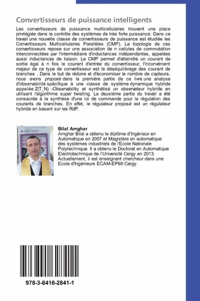 Les convertisseurs de puissance multicellulaires trouvent une place privilégiée dans le contrôle des systèmes de très forte puissance. Dans ce travail une nouvelle classe de convertisseurs de puissance est étudiée les Convertisseurs Multicellulaires Parallèles (CMP). La topologie de ces convertisseurs repose sur une association de n cellules de commutation interconnectées par l'intermédiaire d'inductances indépendantes, appelées aussi inductances de liaison. Le CMP permet d'atteindre un courant de sortie égal à n fois le courant d'entrée du convertisseur, l'inconvénient majeur de ce type de convertisseur est le déséquilibrage des courant de branches . Dans le but de réduire et d'économiser le nombre de capteurs, nous avons proposé dans la première partie de ce livre une analyse d'observabilité spécifique à une classe de système dynamique hybride appelée Z(T_N) -Observability et synthétisé un observateur hybride en utilisant l'algorithme super twisting. La deuxième partie du travail a été consacrée à la synthèse d'une loi de commande pour la régulation des courants de branches. En effet, le régulateur proposé est un régulateur hybride en basant sur les RdP.
