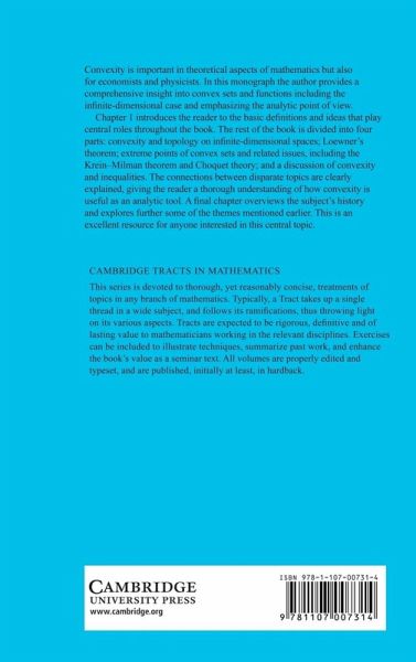 Convexity is important in theoretical aspects of mathematics and also for economists and physicists. In this monograph the author provides a comprehensive insight into convex sets and functions including the infinite-dimensional case and emphasizing the analytic point of view. Chapter one introduces the reader to the basic definitions and ideas that play central roles throughout the book. The rest of the book is divided into four parts: convexity and topology on infinite-dimensional spaces; Loewner's theorem; extreme points of convex sets and related issues, including the Krein-Milman theorem and Choquet theory; and a discussion of convexity and inequalities. The connections between disparate topics are clearly explained, giving the reader a thorough understanding of how convexity is useful as an analytic tool. A final chapter overviews the subject's history and explores further some of the themes mentioned earlier. This is an excellent resource for anyone interested in this central topic.