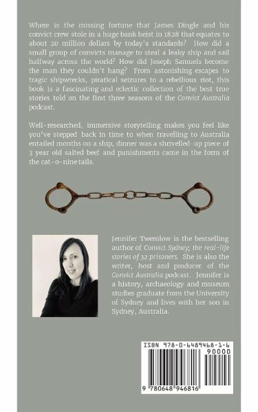 Where is the missing fortune that James Dingle and his convict crew stole in a huge bank heist in 1828 that equates to about 20 million dollars by today's standards? How did a small group of convicts manage to steal a leaky ship and sail halfway across the world? How did Joseph Samuels become the man they couldn't hang? From astonishing escapes to tragic shipwrecks, piratical seizures to a rebellious riot, this book is a fascinating and eclectic collection of the best true stories told on the first three seasons of the Convict Australia podcast. Well-researched, immersive storytelling makes you feel like you've stepped back in time to when travelling to Australia entailed months on a ship, dinner was a shrivelled-up piece of 3 year old salted beef and punishments came in the form of the cat-o-nine tails.