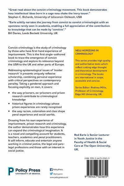 This is the first single authored book to trace the emergence of Convict Criminology and explore its relevance beyond the USA to the UK and other parts of Europe. It presents uniquely reflexive scholarship combining personal experience with critical perspectives on contemporary penalogy, focussing explicitly on men.