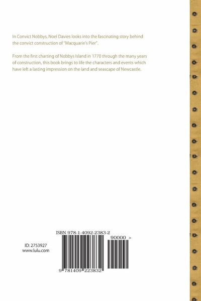 In Convict Nobbys, Noel Davies looks at the fascinating story behind the convict construction of "Macquarie's Pier". From the first charting of Nobbys Island in 1770 through the many years of construction, this book brings to life the characters and events which have left a lasting impression on the land and seascape of Newcastle in New South Wales, Australia.