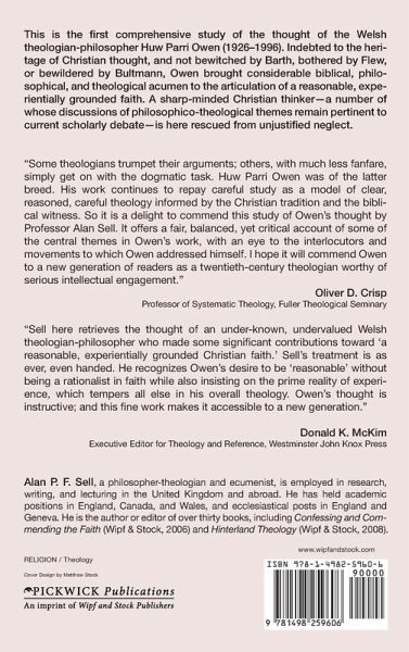 This is the first comprehensive study of the thought of the Welsh theologian-philosopher Huw Parri Owen (1926-1996). Indebted to the heritage of Christian thought, and not bewitched by Barth, bothered by Flew, or bewildered by Bultmann, Owen brought considerable biblical, philosophical, and theological acumen to the articulation of a reasonable, experientially grounded faith. A sharp-minded Christian thinker--a number of whose discussions of philosophico-theological themes remain pertinent to current scholarly debate--is here rescued from unjustified neglect.