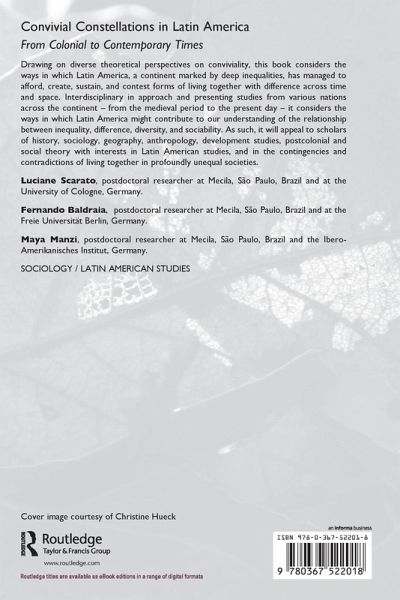 Drawing on diverse theoretical perspectives on conviviality, this book considers the ways in which Latin America, a continent marked by deep inequalities, has managed to afford, create, sustain, and contest forms of living together with difference across time and space. Interdisciplinary in approach and presenting studies from various nations across the continent - from the medieval period to the present day - it considers the ways in which Latin America might contribute to our understanding of the relationship between inequality, difference, diversity, and sociability. As such, it will appeal to scholars of history, sociology, geography, anthropology, development studies, postcolonial and social theory with interests in Latin American studies, and in the contingencies and contradictions of living together in profoundly unequal societies.