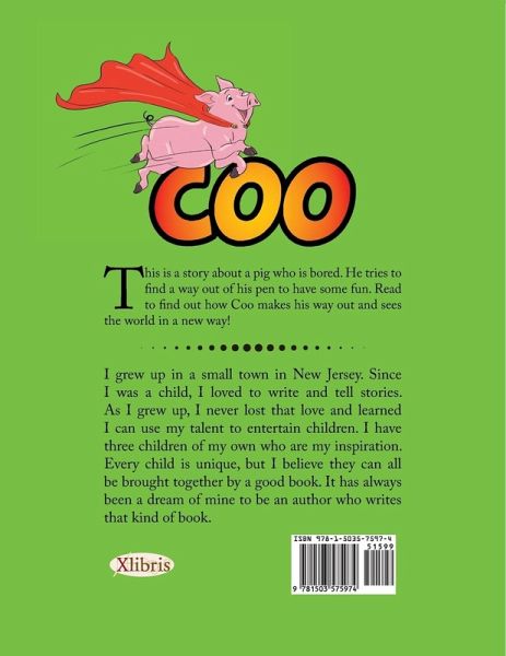 This is a story about a pig who is bored. He tries to find a way out of his pen to have some fun. Read to find out how Coo makes his way out and sees the world in a new way!