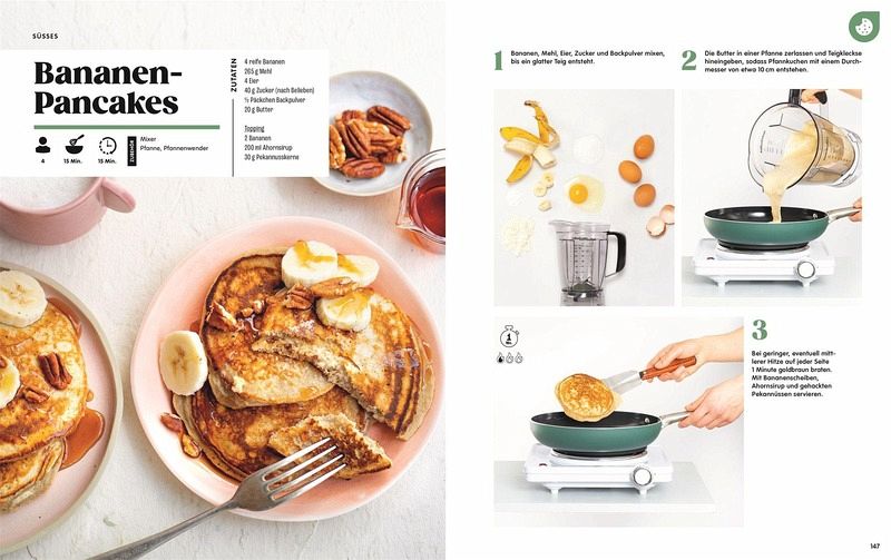 Aller Anfang ist manchmal überraschend leicht. Leckere vegane und vegetarische Gerichte zu zaubern wird mit diesem Kochbuch für Anfänger zum Kinderspiel - dank über 60 einfacher und köstlicher Rezepte, die ideal für Einsteiger_innen sind. Von schneller Frittata über herzhafte Smashed Potatoes bis hin zum perfekten Veggie-Burger - hier findest du easy Rezepte, die deine Geschmacksnerven verwöhnen werden. Auch moderne Lieblinge wie Grünes Shakshuka, würzige Ramen und süße Bananen-Pancakeswarten nur darauf, von dir entdeckt zu werden. Dieses Kochbuch ist mehr als eine bloße Rezeptsammlung - es ist eine visuelle Reise in die Welt der Veggie-Küche, bei der Bilder den Weg weisen. Dank anschaulicher Schritt-für-Schritt-Anleitungen, gepaart mit jeder Menge Bilder lernst du die wichtigsten Grundlagen, wie das richtige Schneiden oder das perfekte Garen von Gemüse, ganz unkompliziert und intuitiv. Bist du bereit?