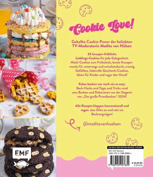 Geballte Cookie-Power der beliebten TV-Moderatorin Madita van Hülsen mit Rezepten, Back-Hacks und Tipps und Tricks rund ums Backen und DekorierenFrühstückskekse, Gefülltes oder Snacks, zum Kaffee, für Kinder und sogar für den Hund - 65 knusper-fröhliche Lieblings-Cookies für jede GelegenheitKekse backen war noch nie so easy: Die kurzen Zutatenlisten und einfachen Anleitungen zaubern im Handumdrehen süße und herzhafte Leckereien auf den Tisch - alle Rezepte klappen konventionell und vegan