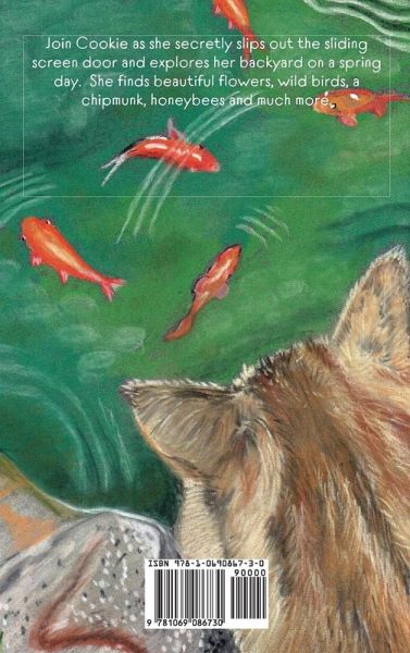 Join Cookie as she secretly slips out the sliding screen door and explores her backyard on a spring day. She finds beautiful flowers, wild birds, a chipmunk, honeybees and much more.