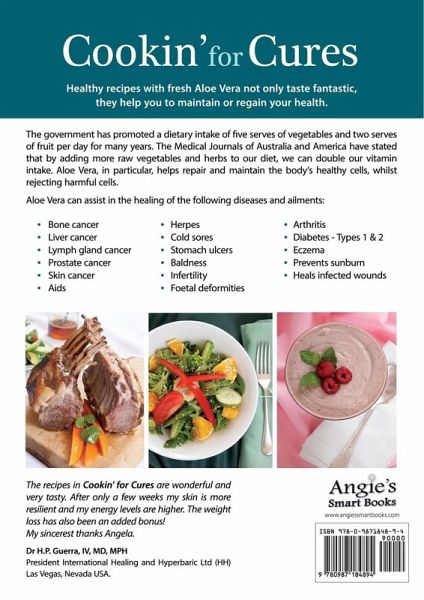 Cookin' for Cures Healthy recipes that not only taste fantastic, but with fresh Aloe vera will help you be healthy. The government has promoted five vegetables, two fruit for many years and I am just adding to this by stating that eating more raw veggies and adding herbs increases the vitamin intake by double, a finding the Australian and American journals came out with a while ago, with also adding Aloe vera which helps repair and maintain the bodies healthy cells and reject harmful ones. A change of eating and drinking habits to do while seeing your doctor. Some of the things Aloe vera can assist in healing are: liver cancer, HIV/aids, lymph gland cancer, prostate cancer, baldness, bone cancer, skin cancer, corrects infertility, diabetes 1 and 2, arthritis, eczema, stomach ulcers, cold sores, herpes, kidney disease, fewer baby deformities, better health for pregnant women, infected sores healed in two weeks, stops sunburn before you go into the sun. Dr HP Guerra IV MD IHH FOP says after just taking Aloe vera for a few weeks: "The results from the book is more resilient skin, better energy, more rapid healing etc. Not to mention the weight loss has been a nice additive."