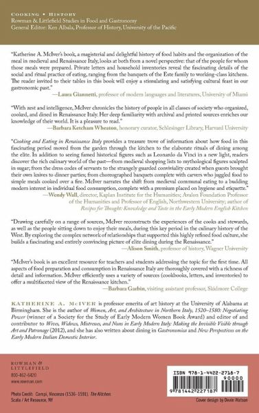 Katherine McIver is a professor emerita of art history at the University of Alabama at Birmingham. She is the author of Women, Art, and Architecture in Northern Italy, 1520-1580: Negotiating Power (winner of a Society for the Study of Early Modern Women Book Award), the editor and contributor of Wives, Widows, Mistresses, and Nuns in Early Modern Italy: Making the Invisible Visible through Art and Patronage (2012), and has also written about dining in Gastronomica and New Perspectives on the Early Modern Italian Domestic Interior.