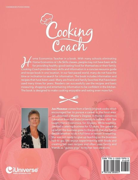 Home Economics Teacher in a book. With many schools eliminating Home Economics or Life Skills classes, people may not have basic skills for providing healthy good tasting food for themselves or their family. Cooking Coach provides basic skills and information in a concise resource guide and recipe book in one location. In our fast-paced world, many do not have the time or inclination to search for information. The book includes information and recipes that have been used. Many are friend and family favorites that have been used many times for years. Readers can successfully use the recipes and basic measuring, shopping and entertaining information to be confident in the kitchen. The book is designed to make cooking enjoyable and eating even more fun.