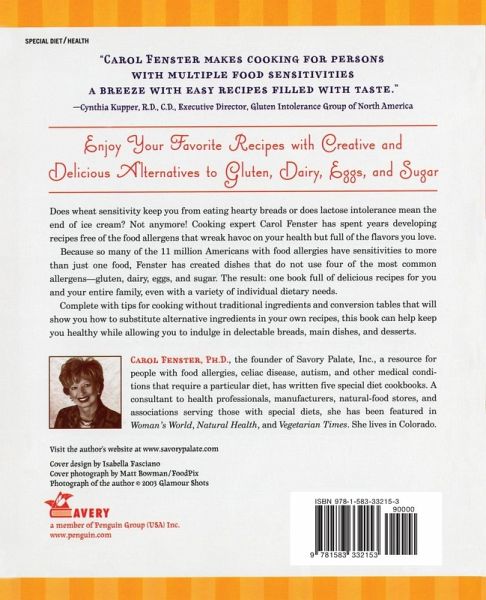 Does wheat sensitivity keep you from eating hearty breads? Or lactose intolerance mean the end of ice cream? Not anymore! Nutrition expert Carol Fenster has spent years developing recipes free of the food allergens that wreak havoc on your health, but full of the flavors you love. Because so many of the 6 to 7 million Americans with food allergies have sensitivities to more than just one food, Fenster has created dishes that remove five of the most common allergens-gluten, dairy, eggs, and sugar-providing one book full of delicious recipes for you and your entire family, no matter what your individual dietary needs. Complete with tips on cooking without traditional ingredients and conversion tables that will show you how to substitute alternative ingredients in your own recipes, this book can help keep you healthy while allowing you to indulge in delectable breads, entrées, and desserts.