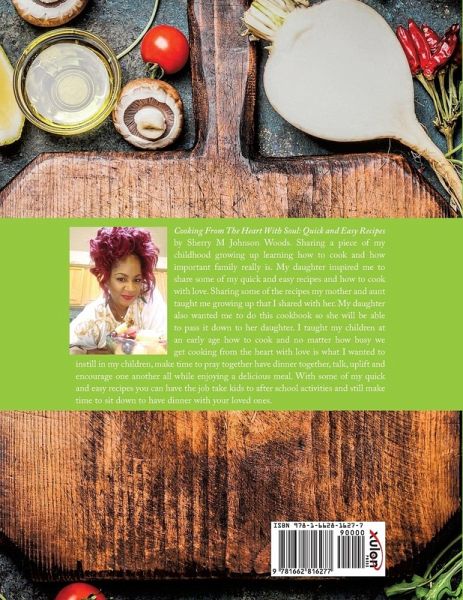 Cooking From The Heart With Soul: Quick and Easy Recipes by Sherry M Johnson Woods. Sharing a piece of my childhood growing up learning how to cook and how important family really is. My daughter inspired me to share some of my quick and easy recipes and how to cook with love. Sharing some of the recipes my mother and aunt taught me growing up that I shared with her. My daughter also wanted me to do this cookbook so she will be able to pass it down to her daughter. I taught my children at an early age how to cook and no matter how busy we get cooking from the heart with love is what I wanted to instill in my children, make time to pray together have dinner together, talk, uplift and encourage one another all while enjoying a delicious meal. With some of my quick and easy recipes you can have the job take kids to after school activities and still make time to sit down to have dinner with your loved ones.