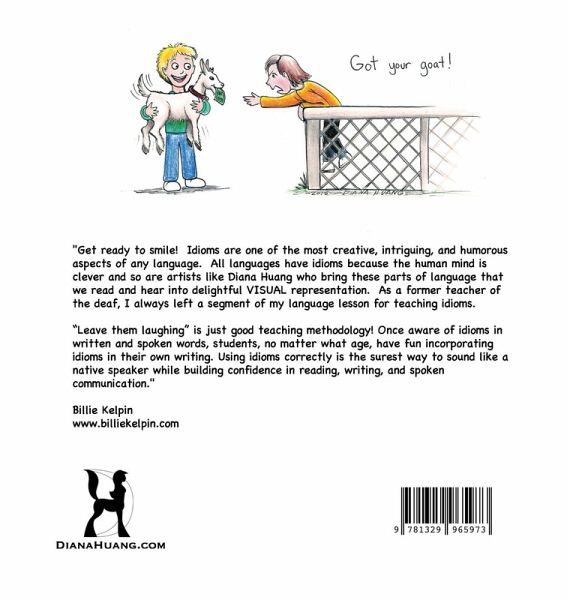 Idioms are sayings particular to a language and culture. They are baffling to language learners of all ages as they are encountered in casual conversations, read in books, heard from radio, television, and film. Idioms are everywhere. Enjoy these 32 cartoons that were drawn, and colored by pencil, from an ever growing list collected over the course of a year. May interesting ideas and conversations grow from looking at this book.