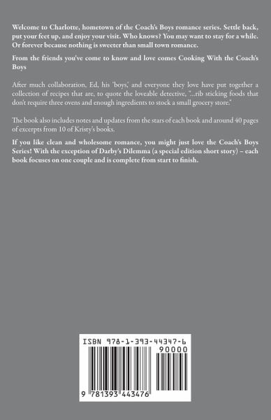 Welcome to Charlotte, hometown of the Coach's Boys romance series. Settle back, put your feet up, and enjoy your visit. Who knows? You may want to stay for a while. Or forever because nothing is sweeter than small town romance. From the friends you've come to know and love comes Cooking With the Coach's Boys After much collaboration, Ed, his 'boys, ' and everyone they love have put together a collection of recipes that are, to quote the loveable detective, "...rib sticking foods that don't require three ovens and enough ingredients to stock a small grocery store." The book also includes notes and updates from the stars of each book and around 40 pages of excerpts from 10 of Kristy's books. If you like clean and wholesome romance, you might just love the Coach's Boys Series! With the exception of Darby's Dilemma (a special edition short story) - each book focuses on one couple and is complete from start to finish.