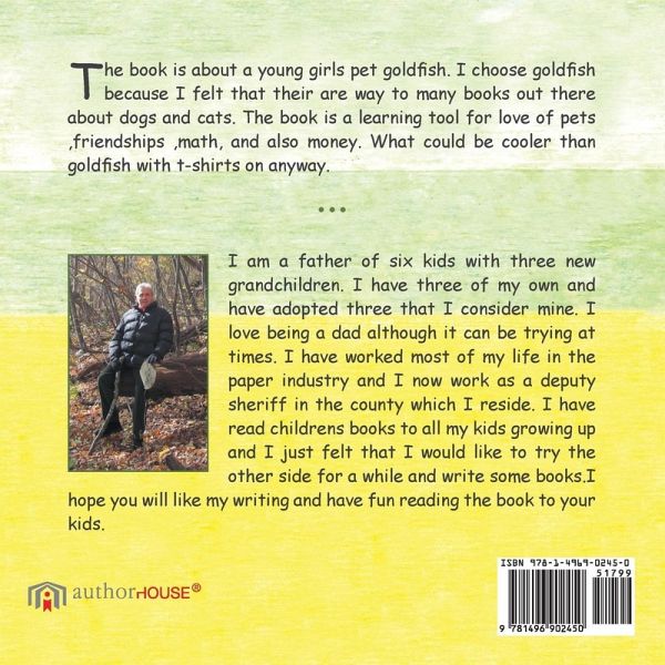The book is about a young girls pet goldfish. I choose goldfish because I felt that their are way to many books out there about dogs and cats. The book is a learning tool for love of pets ,friendships ,math, and also money. What could be cooler than goldfish with t-shirts on anyway.