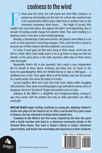 Fifteen-year-old Lizzie-the self-styled and aloof Miss Coolness-is packed up and heading out the door for a three-day weekend stay at her grandmother Mimi's place. Mimi lives in another town at the retirement community Wren Haven . . . the height of uncool. Why couldn't she stay home alone, she argued. She didn't need babysitting. But no amount of pouting would change her parents' minds. They were heading to a business event. It was also a much needed getaway. Monday, a thunderclap of bad news arrives. Her parents were killed in a car crash on their way home. Everything changes. It hits Lizzie that she is about to become one of Wren Haven's full-time residents-very uncool. To Lizzie, if word gets out that she's living at Wren Haven, she'll lose her title in a flash. What Lizzie really wants to do is go home, hang out with her friends-at the pizza place or the mall, anywhere other than at Wren Haven with old people. Meanwhile, Mimi's life is also upended. She's made a new independent life for herself at Wren Haven, footloose and fancy free. As much as she loves her granddaughter, Mimi isn't thrilled having to raise a child again . . . a rebellious one at that. Then again, Mimi is all the family Lizzie has left (except for a weird uncle). She needs the safety of a home. Forced together, Mimi and Lizzie face their inner selves while struggling with priorities. Then, when everything begins to go well, Mimi's money starts to disappear. But how? By whom? Fingers are pointed, even at Lizzie. Coolness to the Wind is a delightful and thought-provoking coming-of-age story woven with the wisdom that only an older generation can offer a young girl.