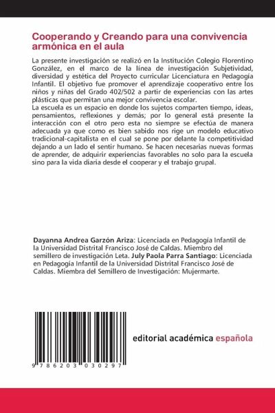 La presente investigación se realizó en la Institución Colegio Florentino González, en el marco de la línea de investigación Subjetividad, diversidad y estética del Proyecto curricular Licenciatura en Pedagogía Infantil. El objetivo fue promover el aprendizaje cooperativo entre los niños y niñas del Grado 402/502 a partir de experiencias con las artes plásticas que permitan una mejor convivencia escolar. La escuela es un espacio en donde los sujetos comparten tiempo, ideas, pensamientos, reflexiones y demás; por lo general está presente la interacción con el otro pero esta no siempre se efectúa de manera adecuada ya que como es bien sabido nos rige un modelo educativo tradicional-capitalista en el cual se pone por delante la competitividad dejando a un lado el sentir humano. Se hacen necesarias nuevas formas de aprender, de adquirir experiencias favorables no solo para la escuela sino para la vida diaria desde el cooperar y el trabajo grupal.