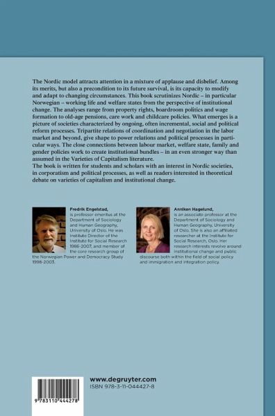 The Nordic model attracts attention in a mixture of applause and disbelief. Among its merits, but also a precondition to its future survival, is its capacity to modify and adapt to changing circumstances. This book scrutinizes Nordic - in particular Norwegian - working life and welfare states from the perspective of institutional change. The analyses range from property rights, boardroom politics and wage formation to old-age pensions, care work and childcare policies. What emerges is a picture of societies characterized by ongoing, often incremental, social and political reform processes. Tripartite relations of coordination and negotiation in the labor market and beyond, give shape to power relations and political processes in particular ways. The close connections between labour market, welfare state, family and gender policies work to create institutional bundles - in an even stronger way than assumed in the Varieties of Capitalism literature.
