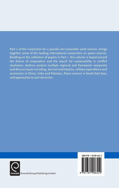 Part 2 of 'Cooperation for a Peaceful and Sustainable World' brings together some of the leading researchers on peace science. Chapters discuss issues including, but not restricted to, military expenditure and economics in China, India and Pakistan, peace science in South East Asia, and approaches to anti-terrorism.