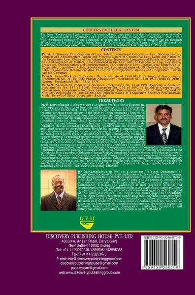 The book "Cooperative Legal System" is organized into three parts in a detailed manner so as to enable you to acquaint with the application of legal provisions relating to cooperative enterprise. Part I deals with the general framework and guidelines of cooperative legislation. Part II presents the development of cooperative law in Ethiopia during Imperial Government and Derg Regime. Part III discusses the development of cooperative law in Ethiopia during Transitional Government (At Present).