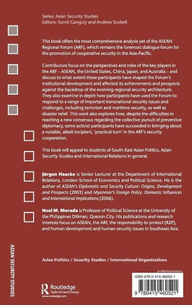 This book offers the most comprehensive analysis yet of the ASEAN Regional Forum (ARF), which remains the foremost dialogue forum for the promotion of cooperative security in the Asia-Pacific. Contributors focus on the perspectives and roles of the key players in the ARF - ASEAN, the United States, China, Japan, and Australia - and discuss to what extent these participants have shaped the Forum's institutional development and affected its achievements and prospects against the backdrop of the evolving regional security architecture. They also examine in depth how participants have used the Forum to respond to a range of important transnational security issues and challenges, including terrorism and maritime security, as well as disaster relief. This work also explores how, despite the difficulties in reaching a new consensus regarding the collective pursuit of preventive diplomacy, some activist participants have succeeded in bringing about a notable, albeit incipient, 'practical turn' in the ARF's security cooperation. This book will appeal to students of South-East Asian Politics, Asian Security Studies and International Relations in general.