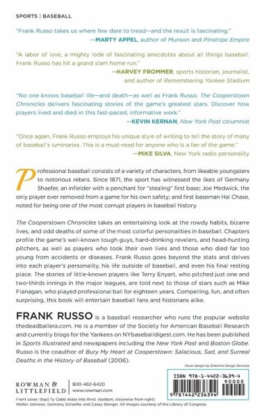 Professional baseball has always consisted of a variety of characters, from likeable youngsters to notorious rebels. From 1871 to the present, the sport has witnessed the likes of Germany Schaeffer, an infielder with a penchant for "stealing" first base; Joe Medwick, the only player ever removed from a game for his own safety; and first baseman Hal Chase, noted for being one of the most corrupt players in baseball history. The Cooperstown Chronicles takes an entertaining look at the unusual lives, strange demises, and downright rowdy habits of some of the most colorful personalities in the history of baseball. Chapters profile the game's well-known tough-guys, the hard-drinking revelers, head-hunting pitchers, players who took their own lives, and those who died far too young from accidents or diseases. Frank Russo goes beyond the stats and delves into each player's personality, his life outside of baseball, and even his final resting place. The stories of little-known players like Terry Enyart, who pitched just one and two-thirds innings in the major leagues, are told next to those of superstars such as Mike Flanagan, who played professional ball for 18 years. However brief or long a career he may have had, every major league player has a story to tell. The Cooperstown Chronicles gives a voice to many of those players who are no longer able to tell their stories themselves. Compelling, fun, and often surprising, this book will entertain baseball fans and historians alike.