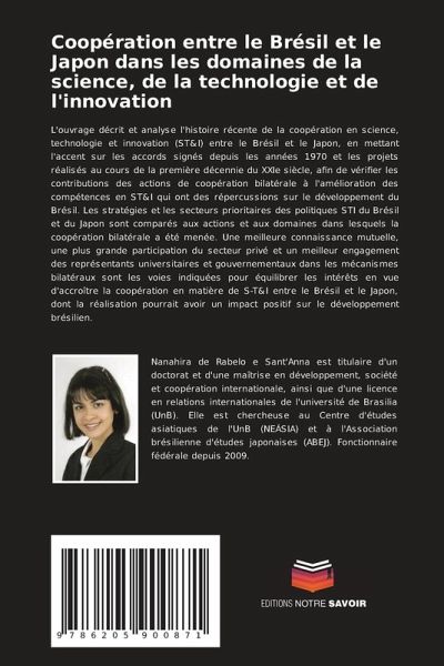 L'ouvrage décrit et analyse l'histoire récente de la coopération en science, technologie et innovation (ST&I) entre le Brésil et le Japon, en mettant l'accent sur les accords signés depuis les années 1970 et les projets réalisés au cours de la première décennie du XXIe siècle, afin de vérifier les contributions des actions de coopération bilatérale à l'amélioration des compétences en ST&I qui ont des répercussions sur le développement du Brésil. Les stratégies et les secteurs prioritaires des politiques STI du Brésil et du Japon sont comparés aux actions et aux domaines dans lesquels la coopération bilatérale a été menée. Une meilleure connaissance mutuelle, une plus grande participation du secteur privé et un meilleur engagement des représentants universitaires et gouvernementaux dans les mécanismes bilatéraux sont les voies indiquées pour équilibrer les intérêts en vue d'accroître la coopération en matière de S-T&I entre le Brésil et le Japon, dont la réalisation pourrait avoir un impact positif sur le développement brésilien.