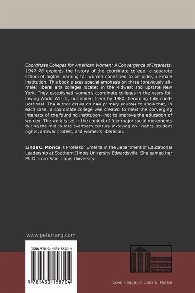 Coordinate Colleges for American Women: A Convergence of Interests, 1947-78 explores the history of the coordinate college-a separate school of higher learning for women connected to an older, all-male institution. This book places special emphasis on three (previously all-male) liberal arts colleges located in the Midwest and upstate New York. They established women's coordinate colleges in the years following World War II, but ended them by 1980, becoming fully coeducational. The author draws on new primary sources to show that, in each case, a coordinate college was created to meet the converging interests of the founding institution-not to improve the education of women. The work is set in the context of four major social movements during the mid-to-late twentieth century involving civil rights, student rights, antiwar protest, and women's liberation.