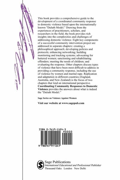 The `Duluth Model' is a widely disseminated approach to community-based intervention in domestic violence. This authoritative and comprehensive volume examines how to develop a response to domestic violence using the Model. Key issues addressed include: enhancing networking among service providers; building monitoring and tracking systems; developing a supportive infrastructure for victims; providing sanctions and rehabilitation opportunities; addressing the needs of children; and evaluating the effectiveness of community response.