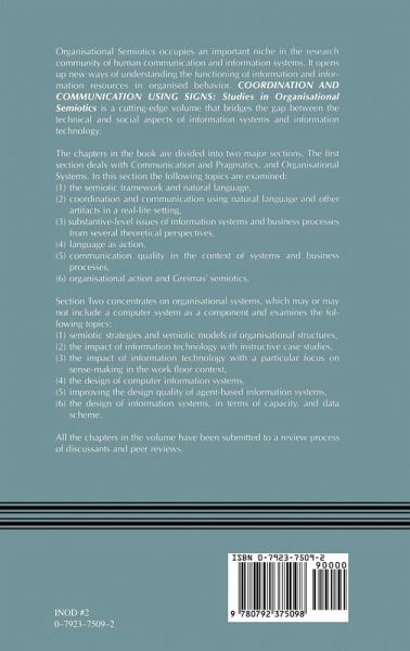 Coordination And Communication Using Signs: Studies in Organisational Semiotics is a cutting-edge volume that bridges the gap between the technical and social aspects of information systems and information technology. The chapters in the book are divided into two major sections. The first section deals with Communication and Pragmatics, and Organisational Systems and the following topics are examined: