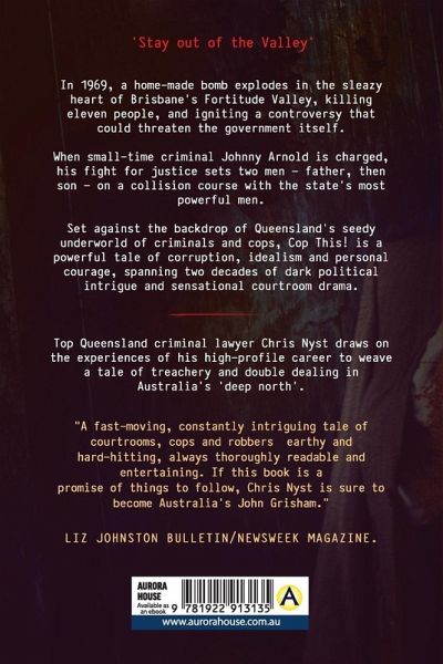 In 1969, a home-made bomb explodes in the sleazy heart of Brisbane's Fortitude Valley, killing eleven people, and igniting a controversy that could threaten the government itself. When small-time criminal Johnny Arnold is charged, his fight for justice sets two men - father, then son - on a collision course with the state's most powerful men. Set against the backdrop of Queensland's seedy underworld of criminals and cops, Cop This! is a powerful tale of corruption, idealism and personal courage, spanning two decades of dark political intrigue and sensational courtroom drama. Top Queensland criminal lawyer Chris Nyst draws on the experiences of his high-profile career to weave a tale of treachery and double dealing in Australia's 'deep north'.