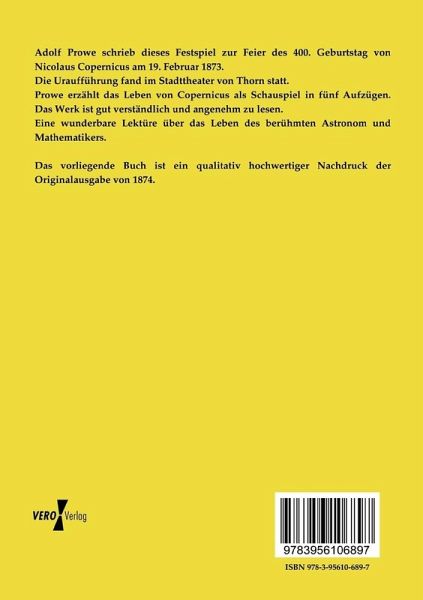 Prowe erzählt das Leben von Copernicus als Schauspiel in fünf Aufzügen. Das Werk ist gut verständlich und angenehm zu lesen.