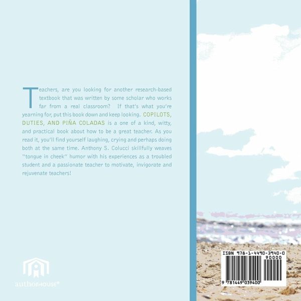 Teachers, are you looking for another research-based textbook that was written by some scholar who works far from a real classroom? If that's what you're yearning for, put this book down and keep looking. Copilots, Duties, and Piña Coladas is a one of a kind, witty, and practical book about how to be a great teacher. As you read it, you'll find yourself laughing, crying and perhaps doing both at the same time. Anthony S. Colucci skillfully weaves "tongue in cheek" humor with his experiences as a troubled student and a passionate teacher to motivate, invigorate and rejuvenate teachers!