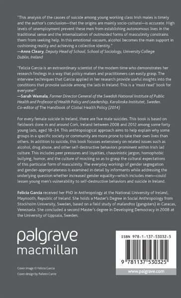 "Felicia Garcia is an extraordinary scientist of the modern time who demonstrates her research findings in a way that policy makers and practitioners can easily grasp. The interview techniques that Garcia applied in her research provide useful insights into the conditions that provoke suicide among the lads in Ireland. This is a 'must read' book for everyone!" - Sarah Wamala, Former Director General of the Swedish National Institute of Public Health and Professor of Health Policy and Leadership at the Karolinska Institutet, Sweden. Co-editor of The Handbook of Global Health Policy (2014)