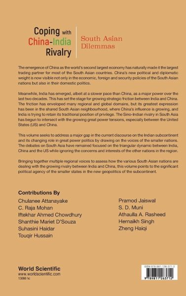 Although China has been an important external actor in South Asia since the middle of the last century, it is only in the 21st century that China became a decisive influence on the region's evolution. The emergence of China as the world's second largest economy had naturally made it the largest trading partner for most of the South Asian countries. China's rapid military modernisation, facilitated by its expansive economic growth, had a major impact on the region's security politics. China's political and diplomatic weight is now visible sharply not only in the economic, foreign and security policies of the South Asian nations but also in their domestic politics. Meanwhile, India has emerged, albeit at a slower pace than China, as a major power over the last two decades. Like Beijing, New Delhi's geopolitical aspirations too have steadily risen during that period. This has set the stage for growing strategic friction between the India and China. The friction has enveloped many regional and global domains, but its greatest expression has been in the shared South Asian neighbourhood. India is determined to sustain its traditional primacy in the region and China is determined to consolidate its growing influence in South Asia. The sharpening friction has also begun to intersect with the growing great power tensions, especially between the United States and China. Many elements of these new dynamic have drawn academic engagement, in particular from the major power perspectives. However, the voices of the smaller South Asian nations have not been sufficiently heard or analysed. This volume seeks to address that major gap in the current discourse on the Indian subcontinent and its changing role in great power politics. This volume brings multiple regional voices to assess how the various South Asian nations are dealing with the growing rivalry between India and China. Many of the chapters in this volume were initially published as shorter essays by the Institute of South Asian Studies in its South Asia Discussion Papers series in 2020. Those essays have been updated and expanded in this volume. Additional contributions have also been commissioned to enrich the special perspectives that this volume presents.