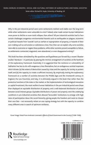 All pre-industrial societies had to face certain challenges: earthquakes, plague, warfare, soil erosion and subsistence crises. However, while some settlements were stable over the long term, other settlements proved more vulnerable to crisis. This book has been stimulated by the hypotheses put forward by a recent 'disaster studies' literature, which suggests that vulnerability of habitation is less to do with the crises themselves, but on endogenous societal responses. By testing the explanatory framework on several societies between the Middle Ages and nineteenth-century Europe, it is argued that the most resilient habitations were those that displayed an equitable distribution of property and power.