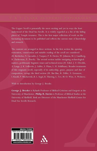 This book contains the papers delivered at the 1996 Copper Scroll Symposium which was organized by the Manchester-Sheffield Centre for Dead Sea Scrolls Research to mark the 40th Anniversary of the opening of this enigmatic scroll in Manchester. The papers cover the history of the Scroll's interpretation (P. Muchowski, P. Davies, B. Segal, M. Wise); how it should be conserved, restored and read (N. Cacoudre, M. Lundberg, E. Puech); how it was produced (P. Kyle McCarter); the meaning of its technical terms (J.F. Elwolde, A. Lange, J. Lefkovits, J. Lubbe, L. Schiffman); its genre (M. Bar-Ilan, R. Fidler, T. Lim); its geography (P.S. Alexander); its correlation with archaeological remains (H. Eshel); and not least who wrote it, when and why (S. Goranson, I Knohl, H. Stegemann, B. Thierine, A. Wolters) with an Introduction by G. Brooke. This is volume 40 in the Journal for the Study of Pseudepigrapha Supplement series.