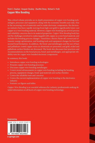 Introduces copper wire bonding technologiesPresents copper wire bonding processesDiscusses copper wire bonding metallurgiesCovers recent advancements in copper wire bonding including the bonding process, equipment changes, bond-pad materials and surface finishesCovers the reliability tests and concernsCovers the current implementation of copper wire bonding in the electronicsindustry Features 120 figures and tables