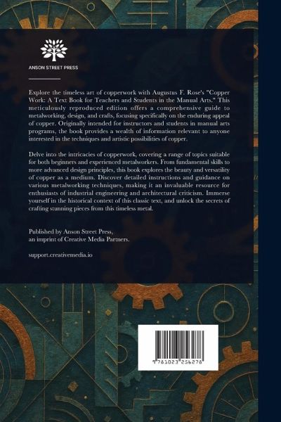 Explore the timeless art of copperwork with Augustus F. Rose's "Copper Work: A Text Book for Teachers and Students in the Manual Arts." This meticulously reproduced edition offers a comprehensive guide to metalworking, design, and crafts, focusing specifically on the enduring appeal of copper. Originally intended for instructors and students in manual arts programs, the book provides a wealth of information relevant to anyone interested in the techniques and artistic possibilities of copper. Delve into the intricacies of copperwork, covering a range of topics suitable for both beginners and experienced metalworkers. From fundamental skills to more advanced design principles, this book explores the beauty and versatility of copper as a medium. Discover detailed instructions and guidance on various metalworking techniques, making it an invaluable resource for enthusiasts of industrial engineering and architectural criticism. Immerse yourself in the historical context of this classic text, and unlock the secrets of crafting stunning pieces from this timeless metal. This work has been selected by scholars as being culturally important, and is part of the knowledge base of civilization as we know it. This work is in the public domain in the United States of America, and possibly other nations. Within the United States, you may freely copy and distribute this work, as no entity (individual or corporate) has a copyright on the body of the work. Scholars believe, and we concur, that this work is important enough to be preserved, reproduced, and made generally available to the public. We appreciate your support of the preservation process, and thank you for being an important part of keeping this knowledge alive and relevant.