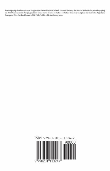 Tired of paying absorbent prices on Frappaccino's, Smoothies and Cocktails. It seems like every few visits to Starbucks the prices keep going up. With Copycat Drink Recipes, you know have a source of some of the best of the best drink recipes at places like Starbucks, Applebee's, Bennigan's, Olive Garden, Cheddars, TGI Friday's, Chick-Fil-A and many more. Grab you copy of this recipe book now!