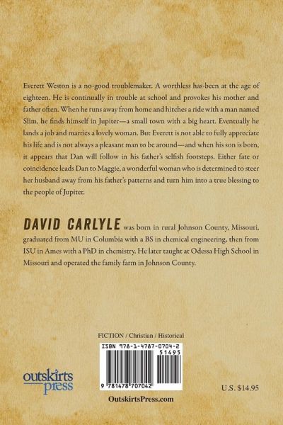 Everett Weston is a no-good troublemaker. A worthless has-been at the age of eighteen. He is continually in trouble at school and provokes his mother and father often. When he runs away from home and hitches a ride with a man named Slim, he finds himself in Jupiter-a small town with a big heart. Eventually he lands a job and marries a lovely woman. But Everett is not able to fully appreciate his life and is not always a pleasant man to be around-and when his son is born, it appears that Dan will follow in his father's selfish footsteps. Either fate or coincidence leads Dan to Maggie, a wonderful woman who is determined to steer her husband away from his father's patterns and turn him into a true blessing to the people of Jupiter.