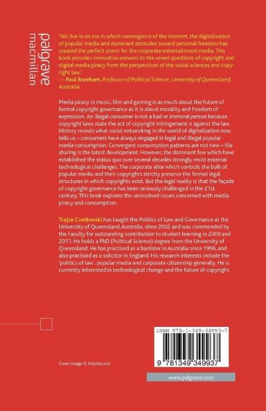 'We live in an era in which convergence of the internet, the digitalization of popular media and dominant attitudes toward personal freedom has created the perfect storm for the corporate entertainment media. This book provides innovative answers to the vexed questions of copyright and digital media piracy from the perspectives of the social sciences and copyright law.' - Paul Boreham, Professor of Political Science, University of Queensland, Australia 'The history of copyright law in popular media is often presented as a one-dimensional story in which a handful of global corporate citizens enjoy unfettered control of intellectual property rights. Running along side this, however, is a parallel history of the liberal consumer who does not accept nor fit into this one-dimensional story of global copyright regulation and control: the latest example being the users of internet technologies and social networking. This topical book examines the convergence between these apparently distinct histories. Drawing on a multidisciplinary approach that combines doctrinal analysis and politico-economic study, the book tells a story of the political control of modern copyright and technological change, and how these impact upon and interact with freedom of expression in Western society. In so doing, the book makes an important and timely contribution to current socio-legal debates on popular media, consumption and copyright governance.' - Brad Sherman, Griffith University, Australia