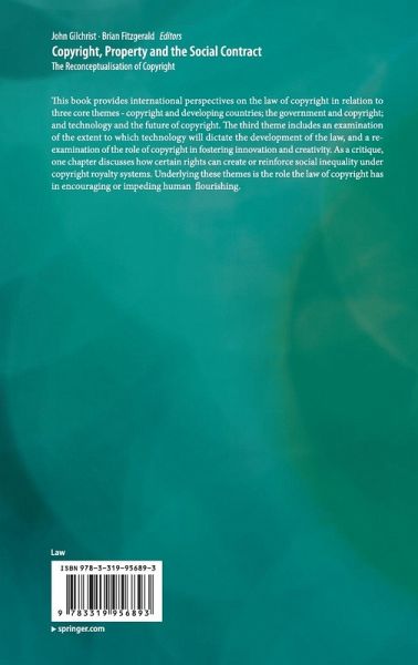 This book provides international perspectives on the law of copyright in relation to three core themes - copyright and developing countries; the government and copyright; and technology and the future of copyright. The third theme includes an examination of the extent to which technology will dictate the development of the law, and a re-examination of the role of copyright in fostering innovation and creativity. As a critique, one chapter discusses how certain rights can create or reinforce social inequality under copyright royalty systems. Underlying these themes is the role the law of copyright has in encouraging or impeding human flourishing.