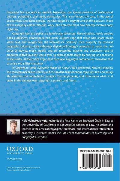 In Copyright: What Everyone Needs to Know , Neil Weinstock Netanel explains the concepts needed to understand the heated debates about copyright law and policy. He identifies the combatants, unpacks their arguments, and illuminates what is at stake in the debates over copyrightàs present and future.