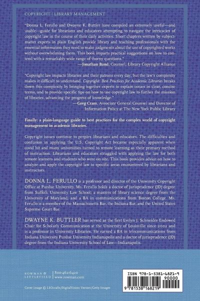 Copyright issues continue to perplex librarians and educators. The difficulties and confusion in applying the U.S. Copyright Act became especially apparent when Covid hit and many universities turned to remote learning. This book provides advice on how to analyze and apply the law to specific areas encountered by librarians and instructors.