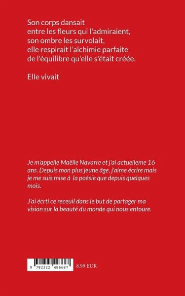 Son corps dansaitentre les fleurs qui l admiraient,son ombre les survolait,elle respirait l alchimie parfaitede l équilibre qu elle s était créée.Elle vivait.Composait de 3 parties, ce livre rassemble plusieurs dizaines de poèmes abordants différentes thématiques.