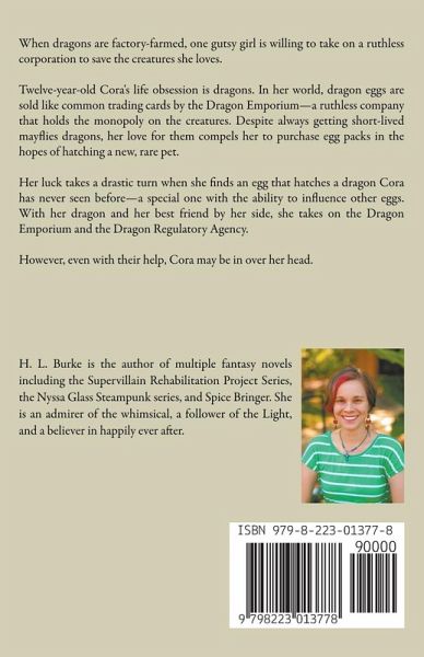 When dragons are factory-farmed, one gutsy girl is willing to take on a ruthless corporation to save the creatures she loves. Twelve-year-old Cora's life obsession is dragons. In her world, dragon eggs are sold like common trading cards by the Dragon Emporium-a ruthless company that holds the monopoly on the creatures. Despite always getting short-lived mayflies dragons, her love for them compels her to purchase egg packs in the hopes of hatching a new, rare pet. Her luck takes a drastic turn when she finds an egg that hatches a dragon Cora has never seen before-a special one with the ability to influence other eggs. With her dragon and her best friend by her side, she takes on the Dragon Emporium and the Dragon Regulatory Agency. However, even with their help, Cora may be in over her head.