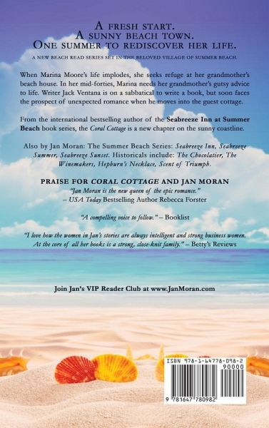 A fresh start. A sunny beach town. One summer to rediscover her life.**A USA TODAY BESTSELLER!** A new beach read series set in the beloved village of Summer Beach. When Marina Moore loses her job, she seeks refuge at her grandmother's beach house called the Coral Cottage. Now in her mid-forties with children in college, Marina is in dire need of her grandmother's gutsy advice to a well-lived life. Marina meets an old friend, Ivy Bay, proprietor of the Seabreeze Inn, who encourages her to share her love of food at the local farmer's market. Soon Marina's sister Kai arrives on a summer break from her musical theater troupe. Together, the sisters discover that life holds a second chance for each of them. Jack Ventana is on a six-month sabbatical to write his first book. The only company he wants is his inquisitive Labrador Retriever puppy, but when he receives a call from an old colleague, he finds his life altered in ways he never imagined-including the prospect of romance. What began as a short, reclusive holiday is destined to change Marina's life, especially when Jack's research uncovers her grandmother Ginger's hidden past. Join the fun in Summer Beach, where the bonds of friendship and love prove unbreakable. From the author of the bestselling Seabreeze Inn at Summer Beach book series, the Coral Cottage is a new chapter on the sunny coastline. Start this women's fiction series now in ebook, hardcover, paperback, large print, and audiobook. "I love how the women in Jan's stories are always intelligent and strong businesswomen. At the core of all her books is a strong, close-knit family." - Reviewer B.J.T. "Jan Moran is the new queen of the epic romance." - USA Today Bestselling Author Rebecca Forster "[Jan Moran is] is a compelling voice to follow." - Booklist "Each of Jan Moran's books is captivating and reflects her love of the written word, as well as her insatiable curiosity." - Reviewer Andrea S.
