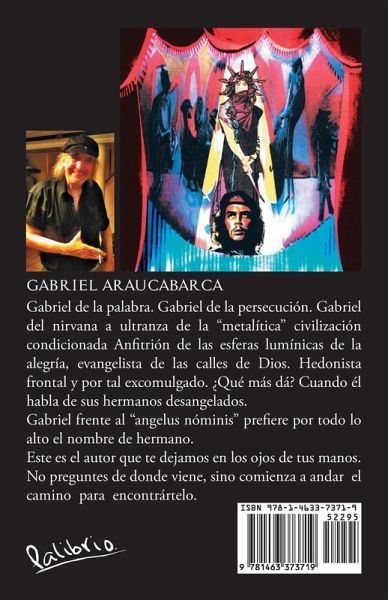 Gabriel de la palabra. Gabriel de la persecución. Gabriel del nirvana a ultranza de la "metalítica" civilización condicionada Anfitrión de las esferas lumínicas de la alegría, evangelista de las calles de Dios. Hedonista frontal y por tal excomulgado. ¿Qué más dá? Cuando él habla de sus hermanos desangelados. Gabriel frente al " angelus nóminis" prefiere por todo lo alto el nombre de hermano. Este es el autor que te dejamos en los ojos de tus manos. No preguntes de donde viene, sino comienza a andar el camino para encontrártelo